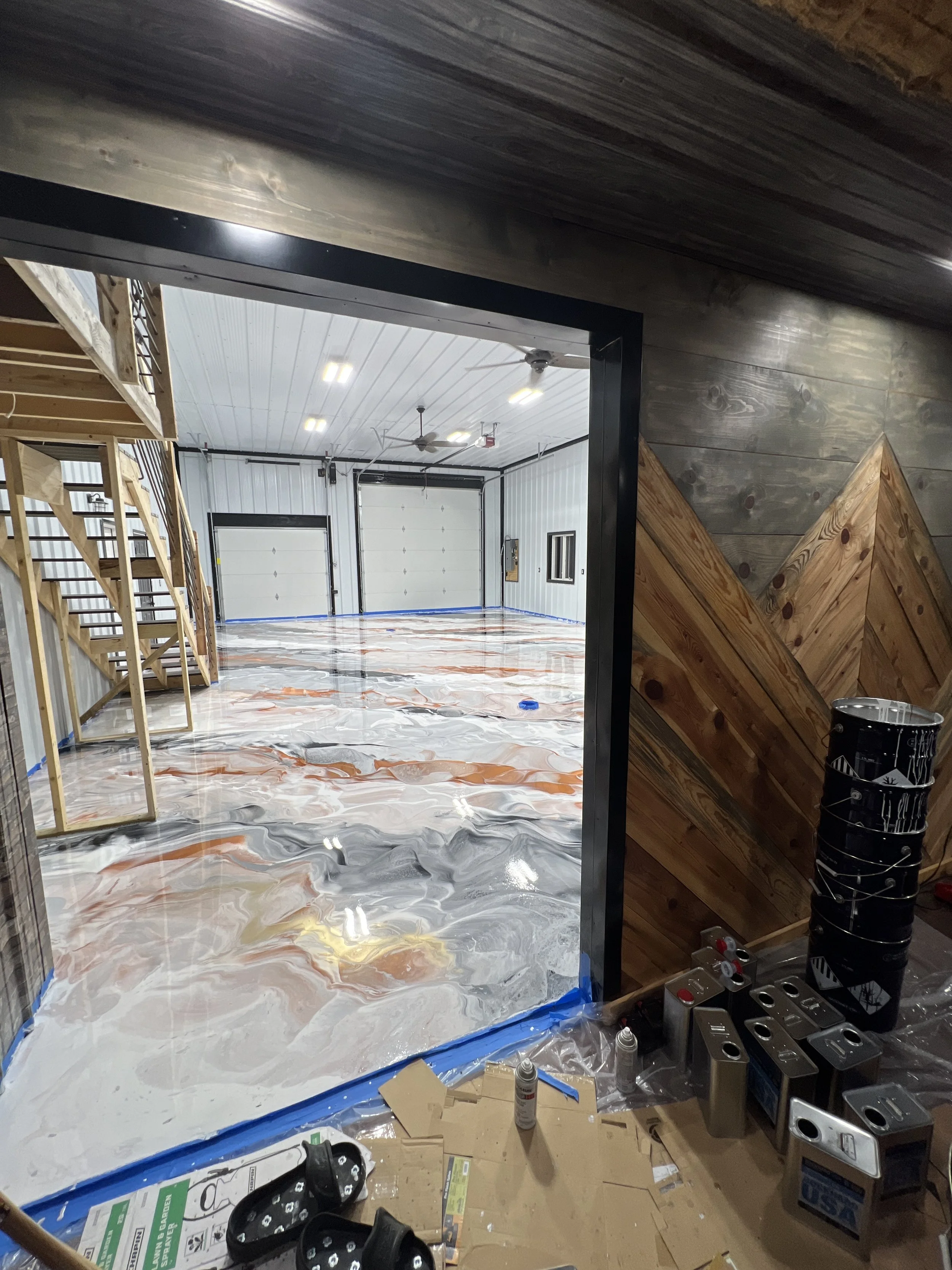 Installation begins with a thorough preparation of the concrete substrate, ensuring it is clean, level, and free from cracks. A base coat is laid down, followed by a layer of metallic epoxy. As the epoxy cures, the pigments are hand manipulated, either through swirling, dragging, swishing leading to mesmerizing designs that resemble everything from waves to marble.